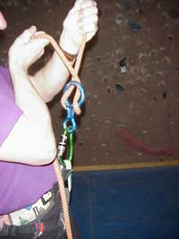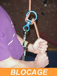 bloquer la corde il faut ramener à la verticale la main tenant la corde sous