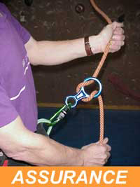 2. SI L'ON ASSURE AVEC UN "8" IL FAUT À TOUT MOMENT ÊTRE ATTENTIF ET TENIR CONVENABLEMENT LA CORDE EN MAIN EN DESSOUS DU "8".